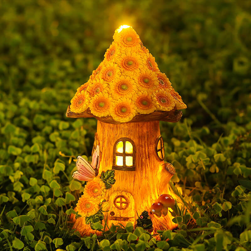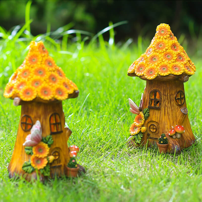 Resin tree house ornaments, solar decorative lights, small house crafts, villa garden courtyard home micro landscape ornaments