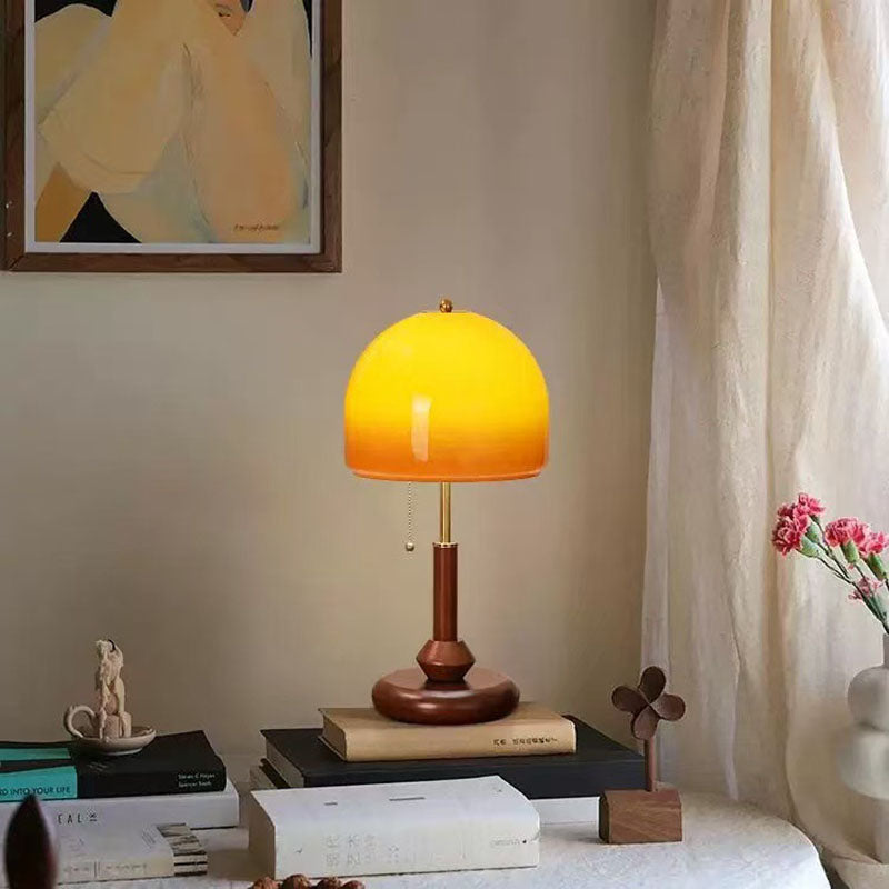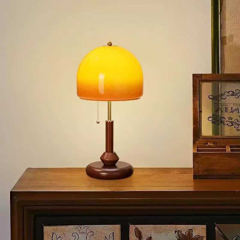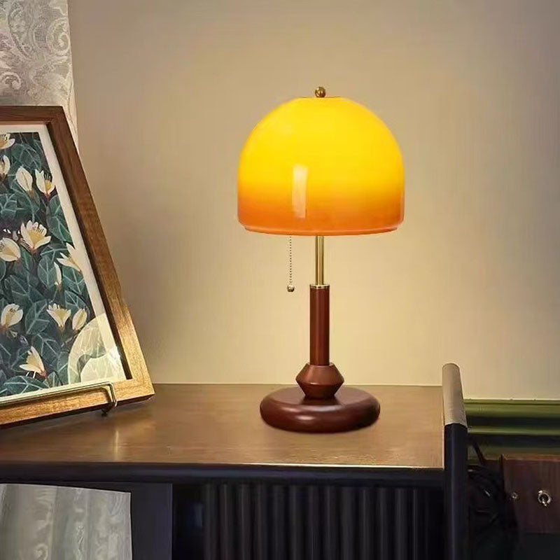 Retro walnut glass decorative table lamp bedroom bedside study room high-end creative lamp American antique table lamp